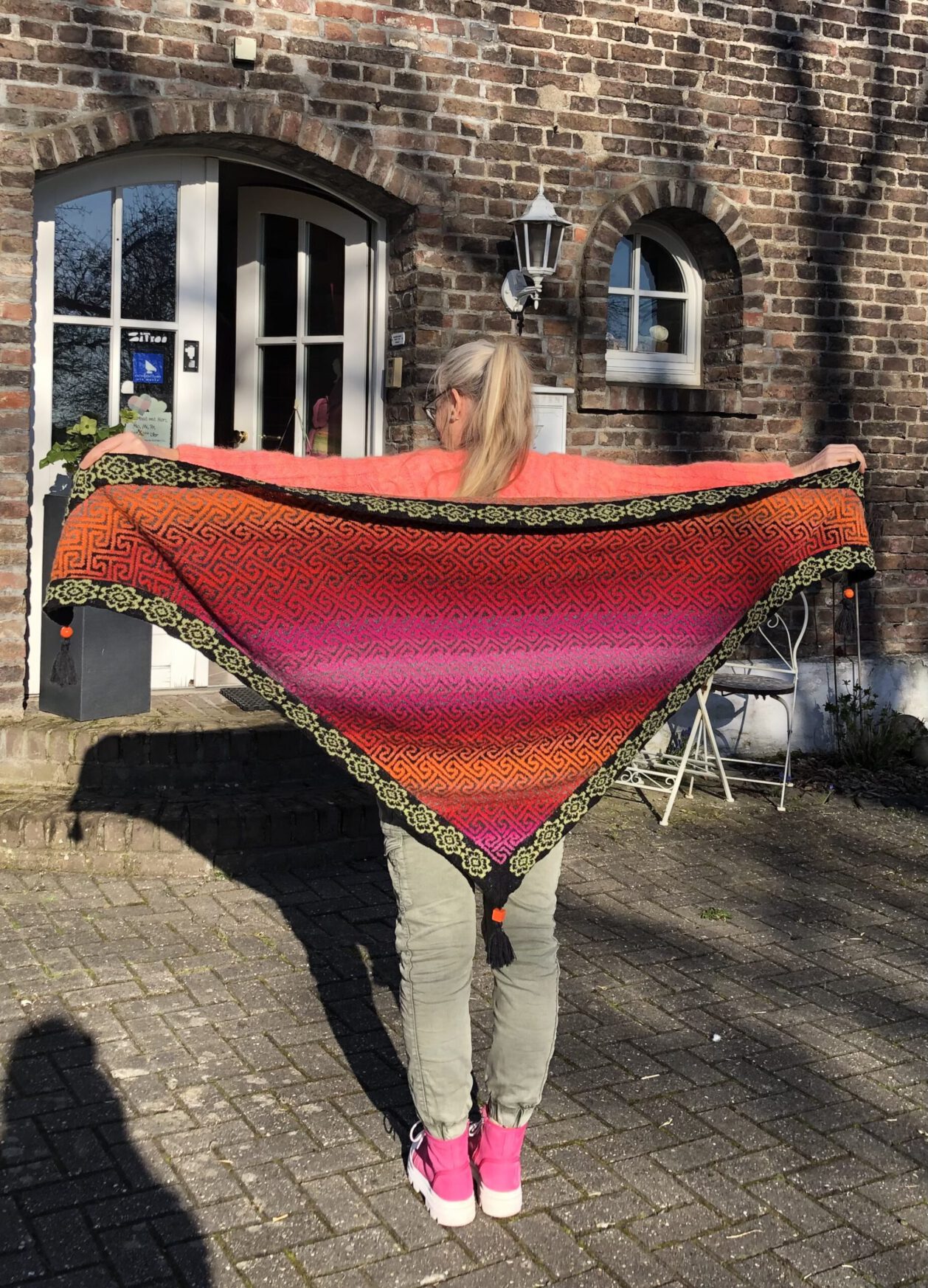 Feuerlilien Tuch von Godila. Es wird das Feuerlilien Tuch gezeigt.